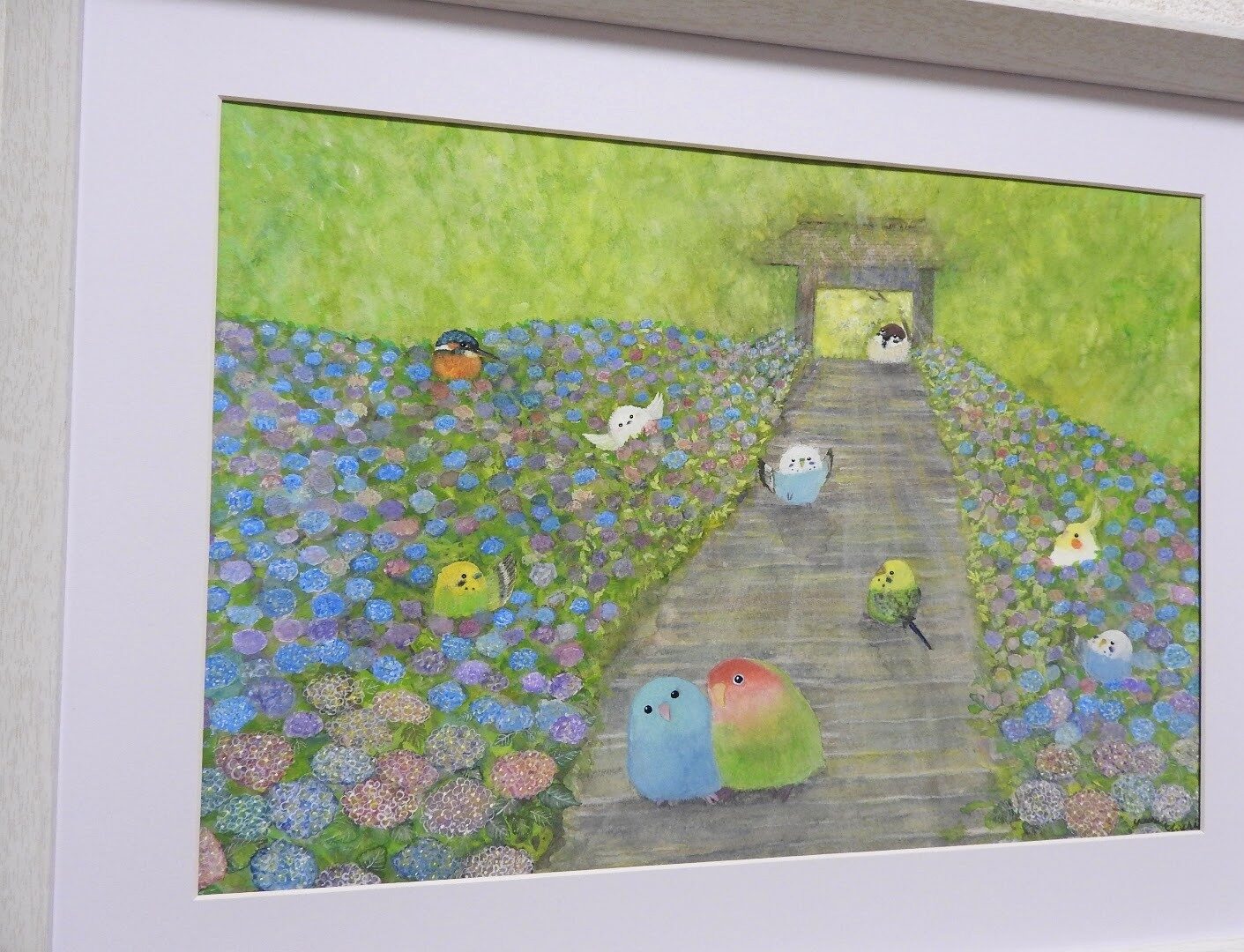 それぞれが待ち合わせをしている可愛らしい1点もの絵画です。