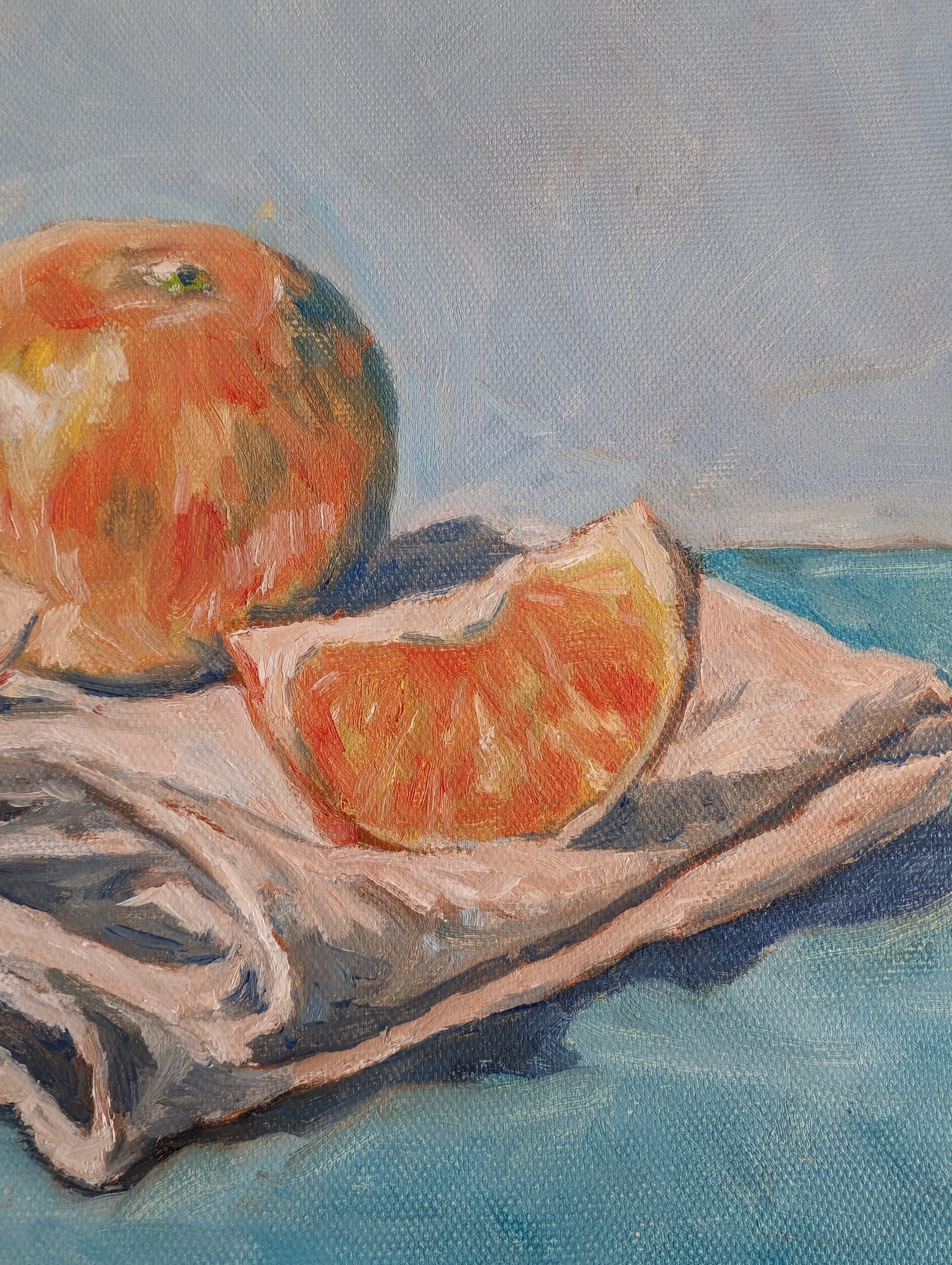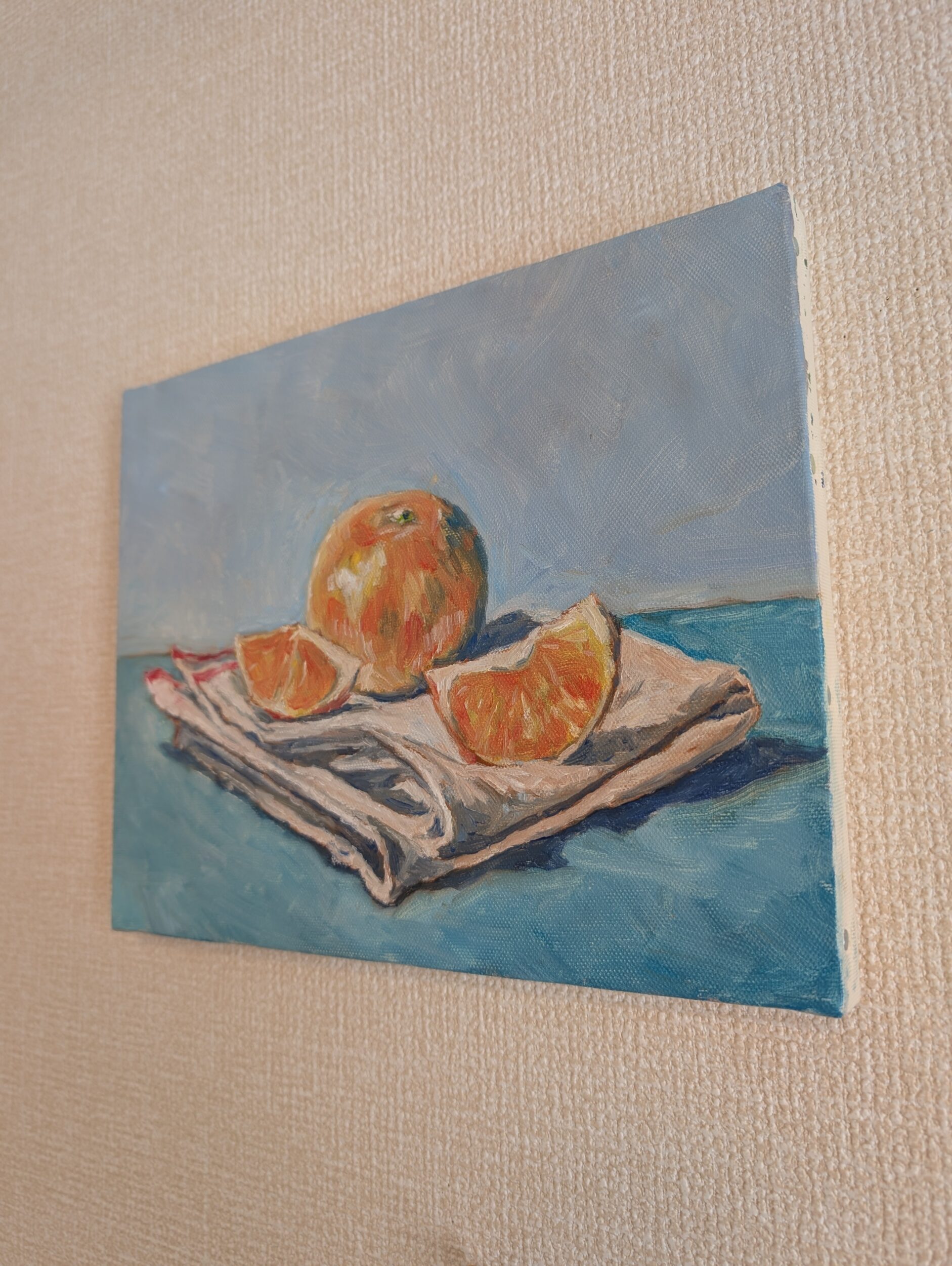 オレンジのようにジューシーで甘いみかん、あまくさ(愛媛県産)と布巾を描きました。