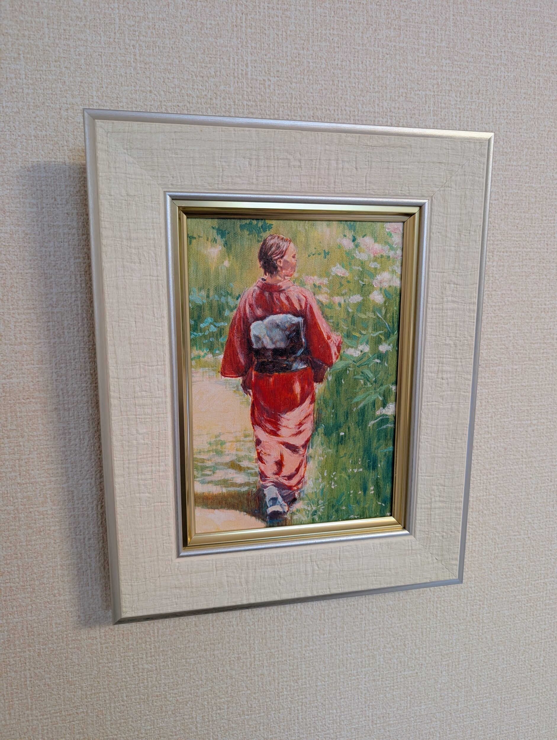 【額縁の有無】有り(マルニ額縁画材店の油絵用額縁、縦約335mm、横約265mm、厚さ約40mm、ホワイト、UVカットアクリルカバー付き)