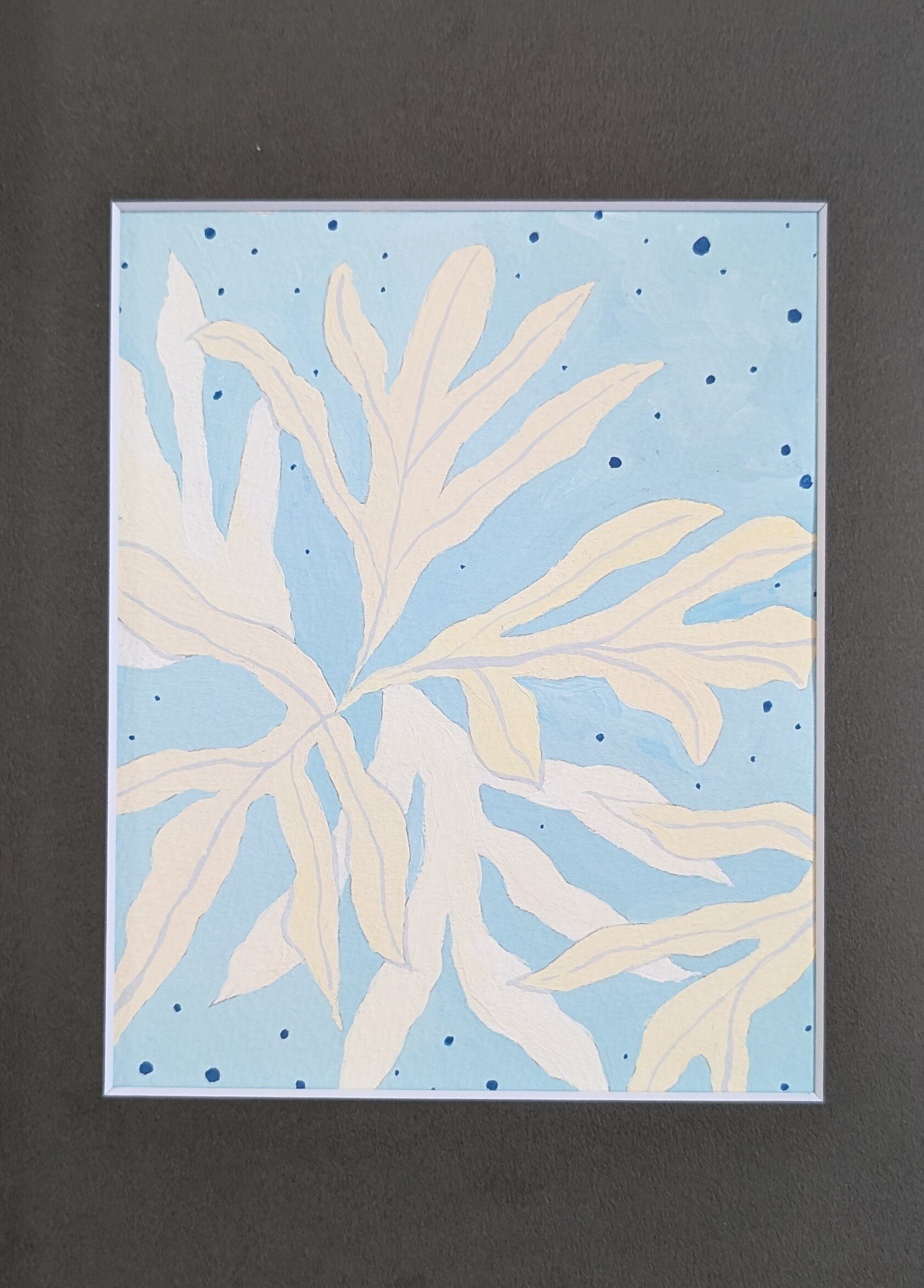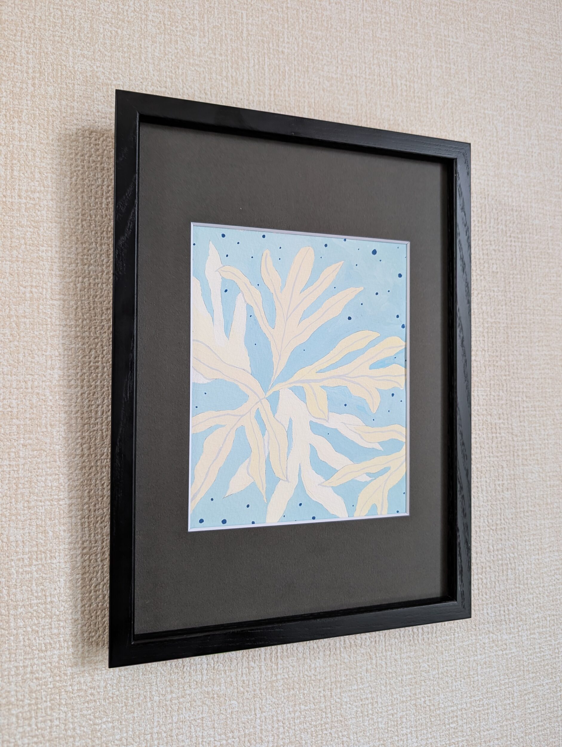 あえて色味を絞ることで、モチーフの線や形を引き立たせました。自由なフォルムを自由に表した作品です。