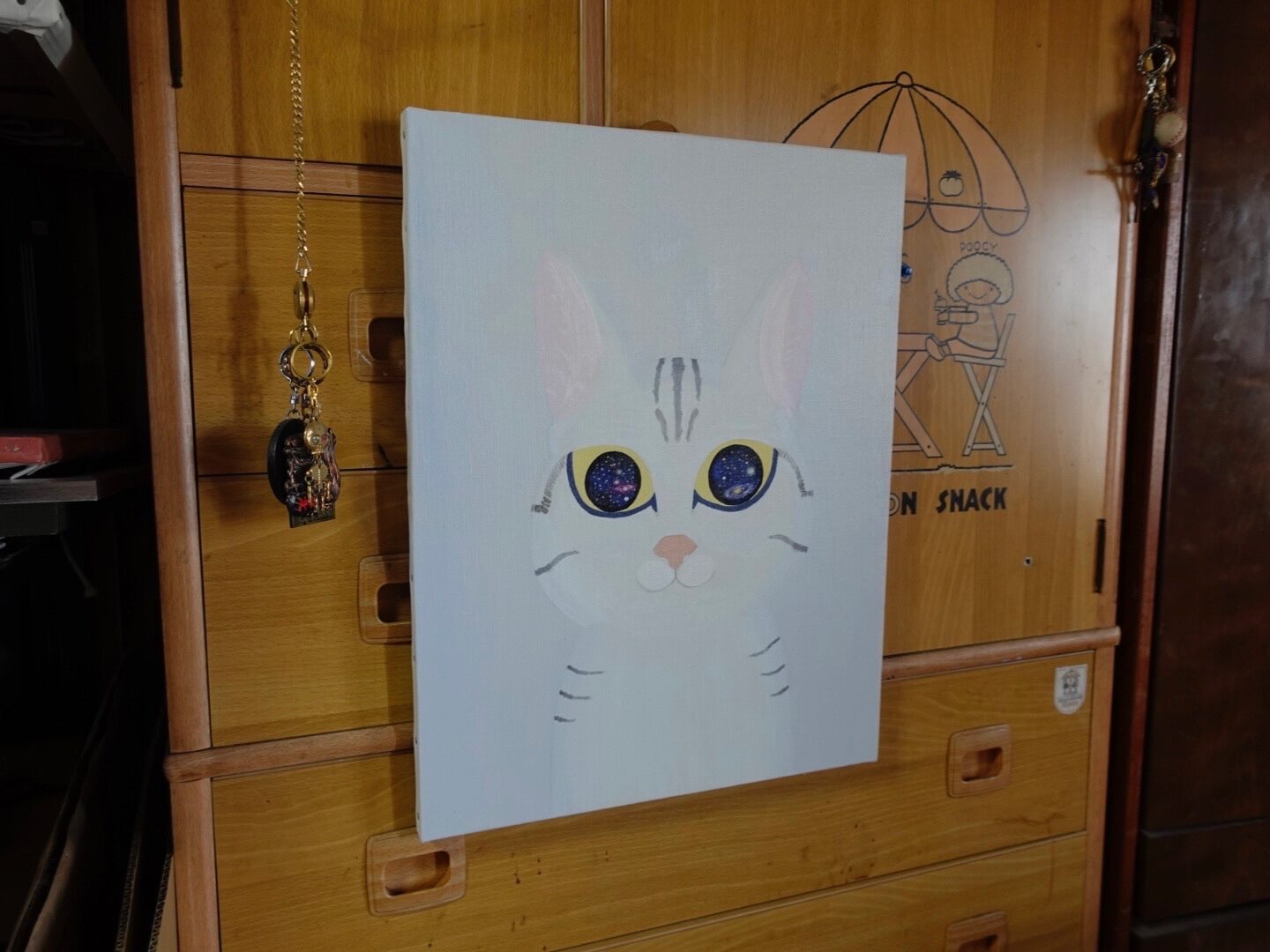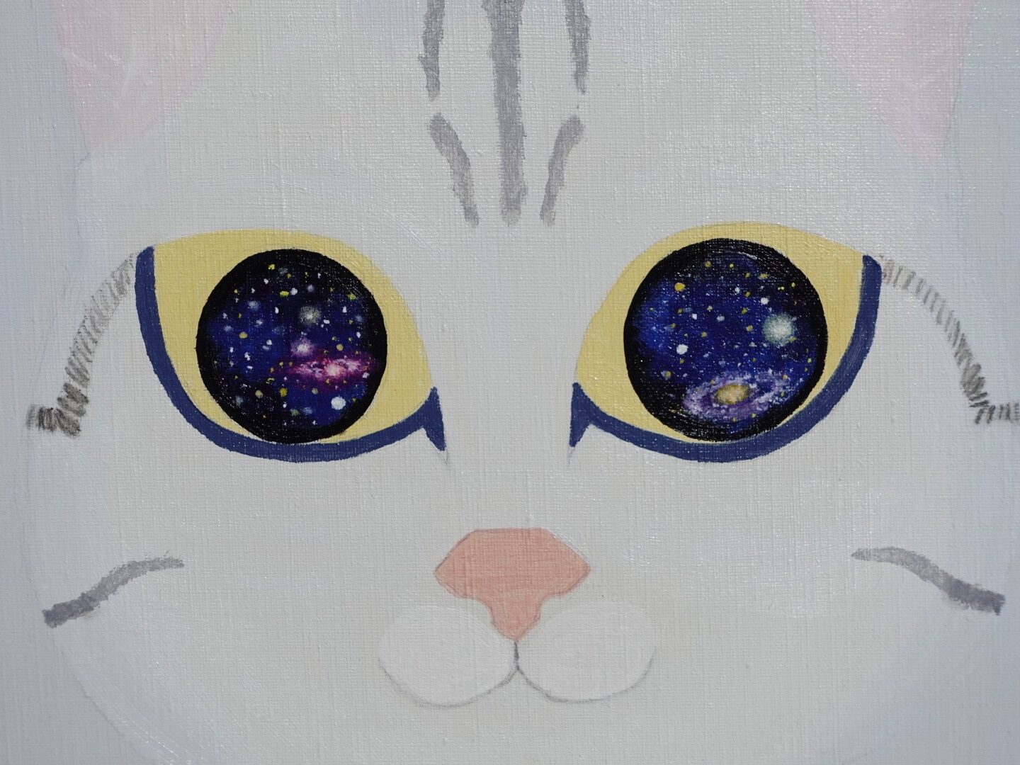 この油絵では、ポップアート風の半抽象的な猫に、遊び心と驚きへの情熱を注ぎ込みました。猫は宇宙的な目をしています。その瞳に宿る星々は、見る人を大きな夢へと誘い、無限の可能性を探求するよう促します。この作品は遊び心と神秘的なエネルギーを放ち、飾られた空間に魔法のような温もりと喜びに満ちた好奇心をもたらします。想像力と、小さな生き物たちに宿る美しさを称える作品です。