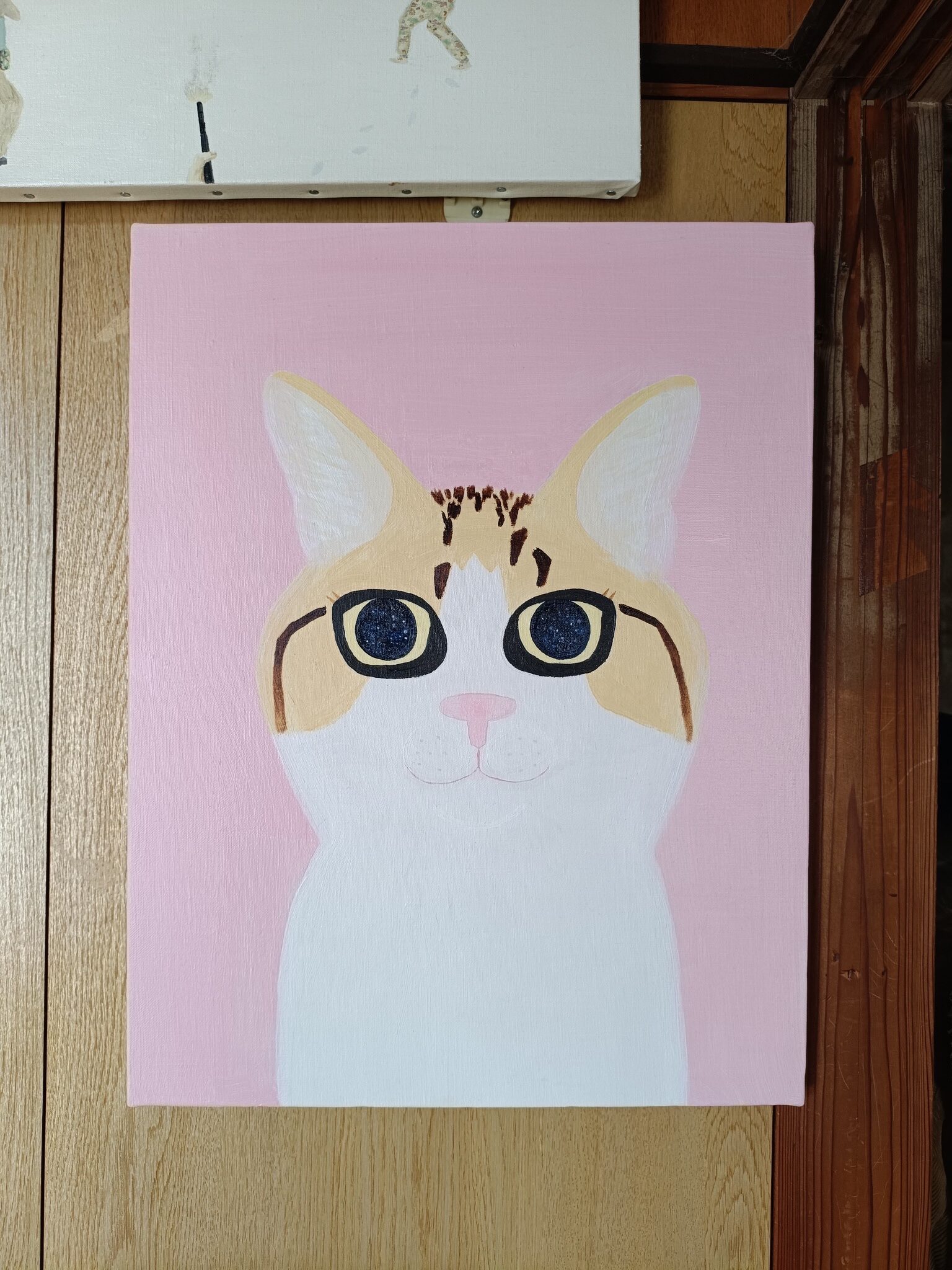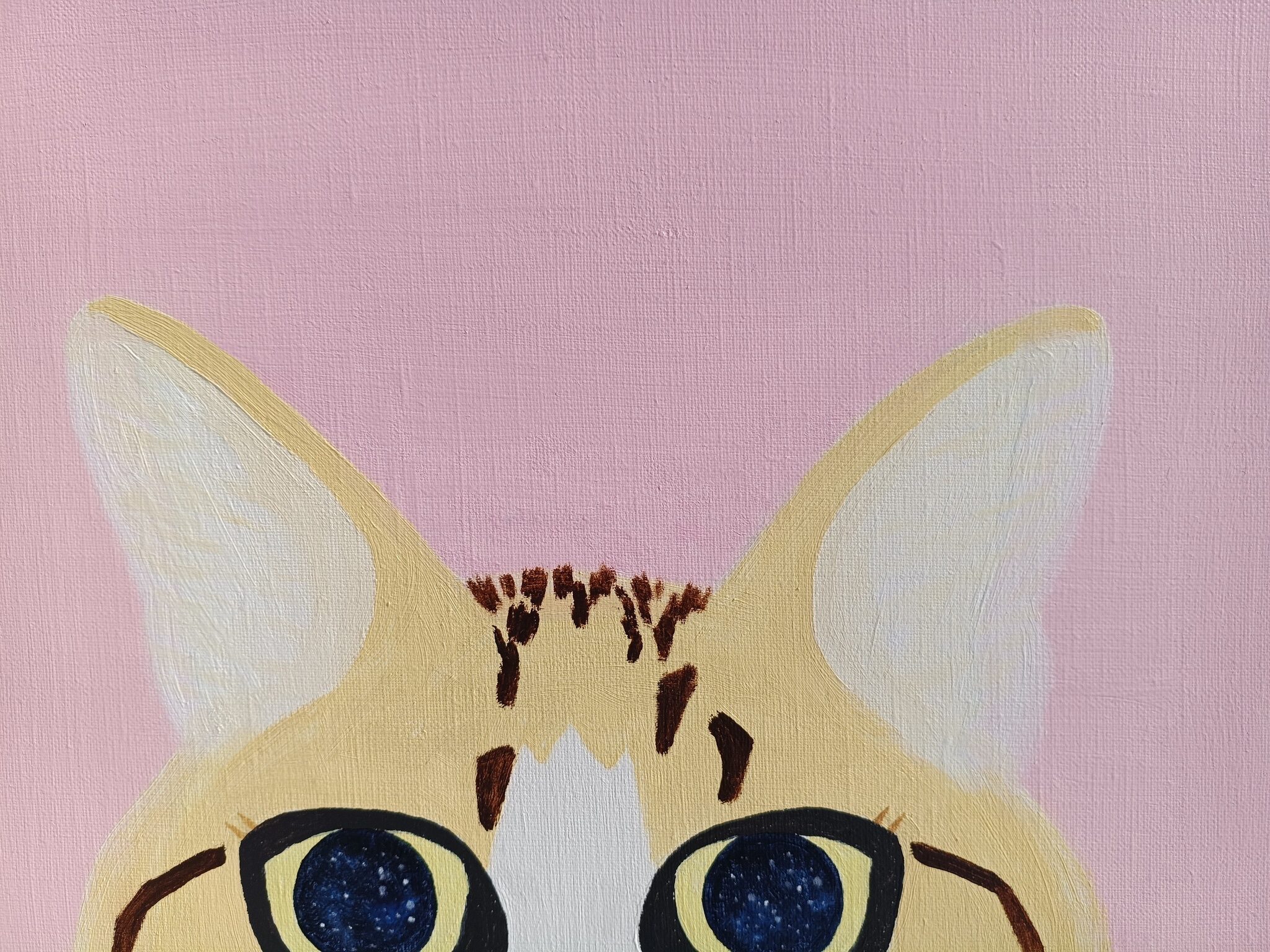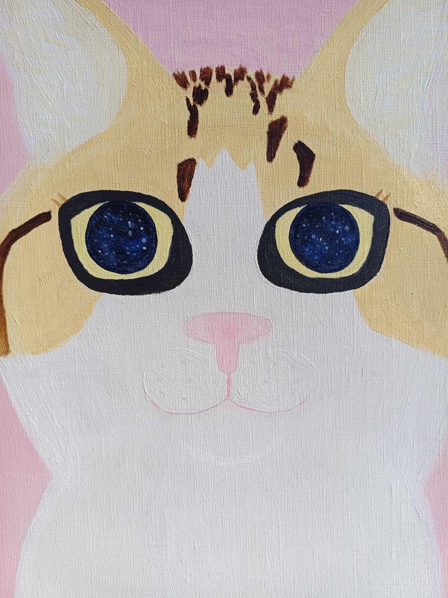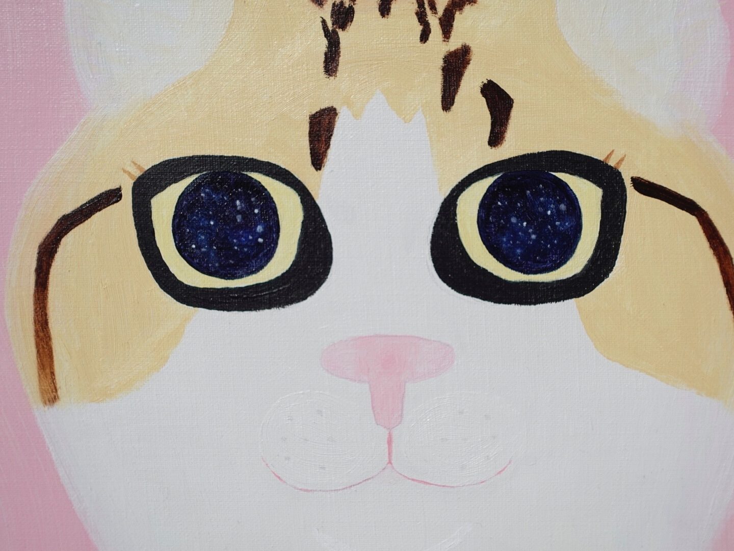 この絵は、遊び心のあるエネルギーと温かさを放っています。大胆なポップアートの影響と半抽象的なスタイルを用いて、明るく魂のこもった瞳を持つ猫の好奇心旺盛な無邪気さを表現しました。柔らかなピンクの背景は、喜びと安らぎに満ちた雰囲気を醸し出し、どんな空間にも魅力と軽快さを添えてくれます。この作品は、シンプルな幸せと、日々の瞬間に感じる魔法を、あなたに届けてくれるでしょう。