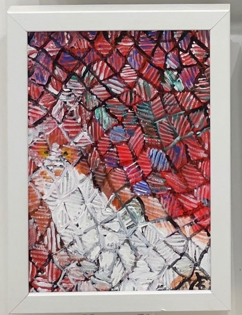 レトロ硝子の後ろに隠れても猫の存在感は隠せません。