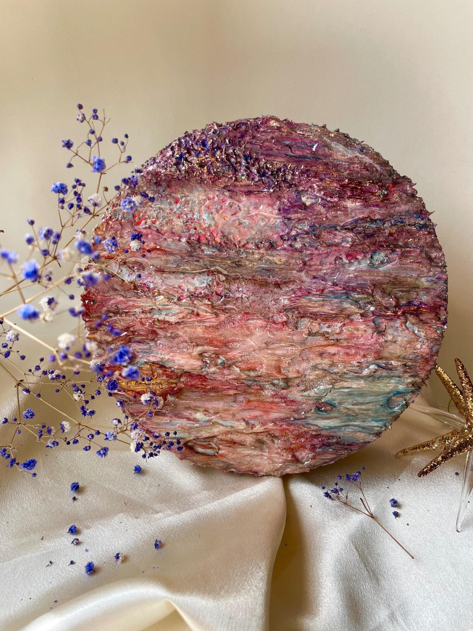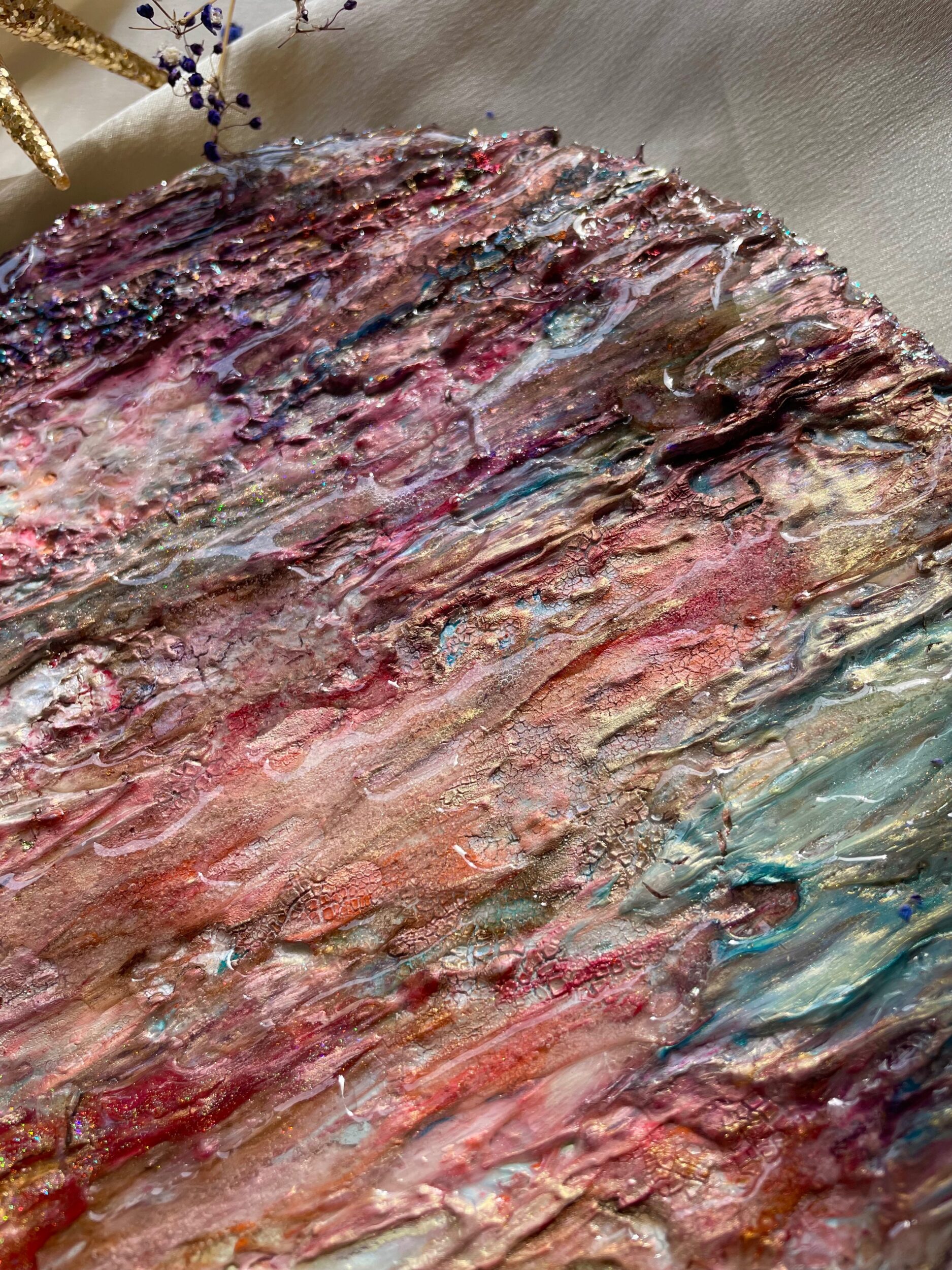 □製作時、画材同士が混ざり合うことや製作環境下の中で塗料のヒビ割れが生じることがございます。