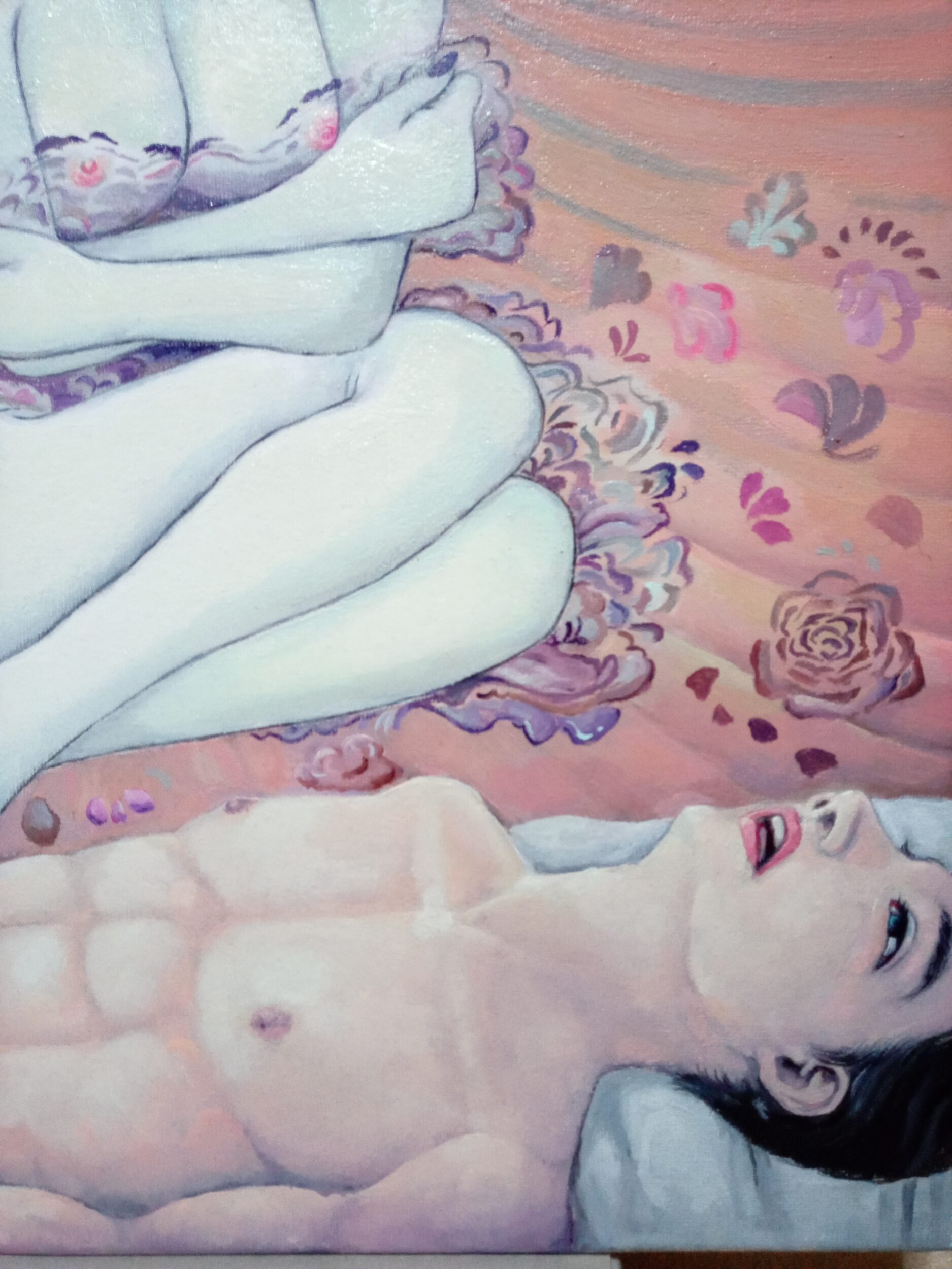 今回久々に男の筋肉を描いた。隆々とした肉体を存分に楽しんで描き上げました。