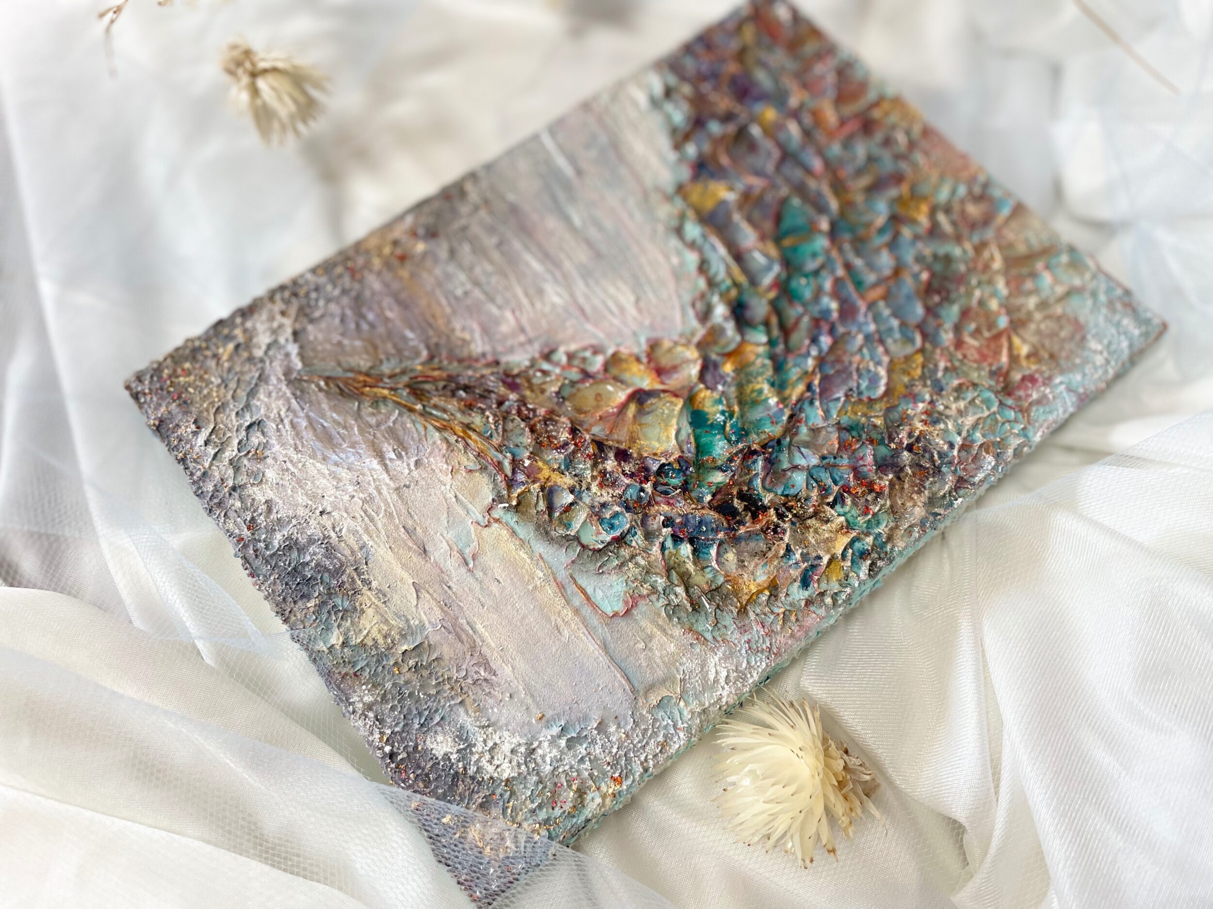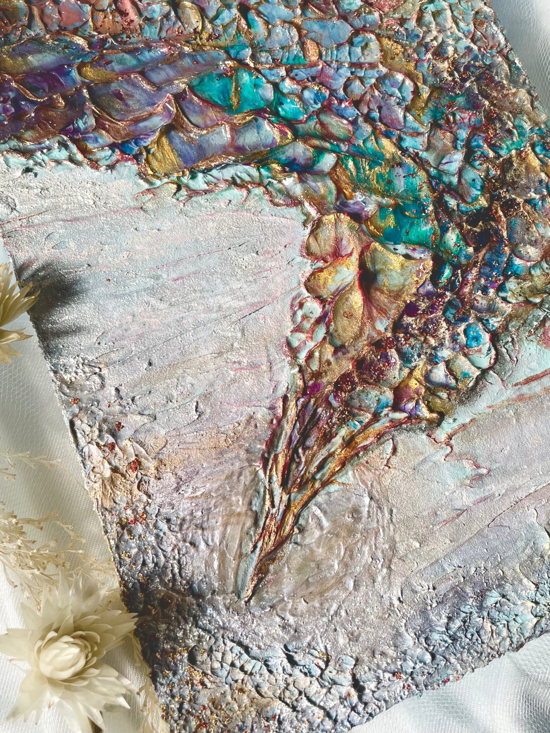 □製作時、画材同士が混ざり合うことや製作環境下の中で塗料のヒビ割れが生じることがございます。