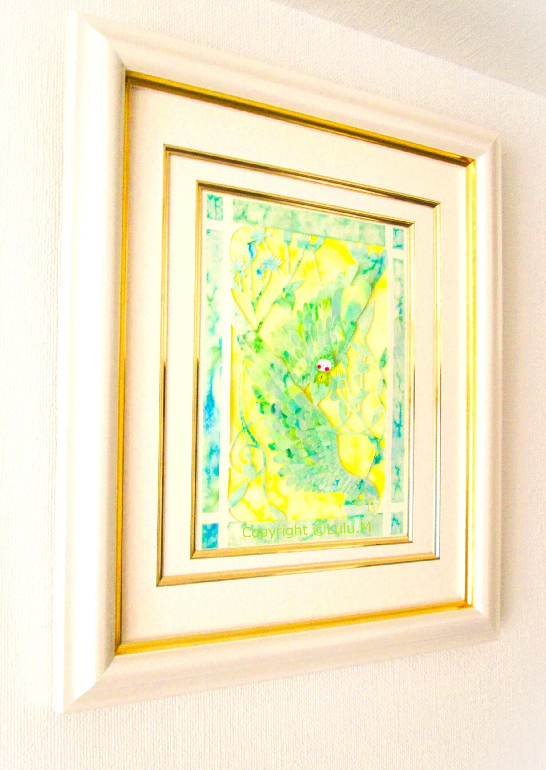 技法 水彩紙、顔彩絵具、コラージュ、切り絵、水彩画