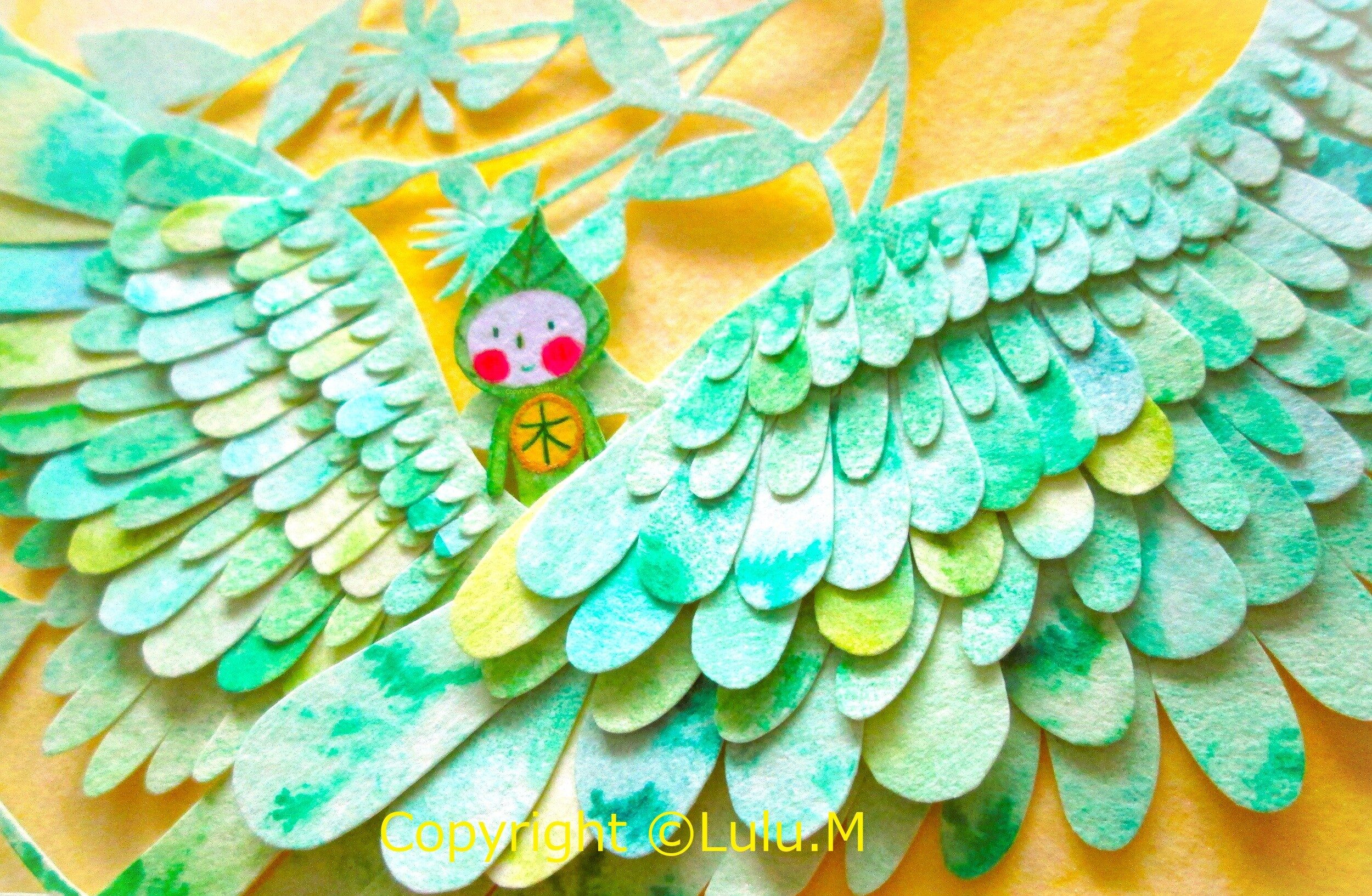 木の葉の精も一緒に飛んで泳いでいます。