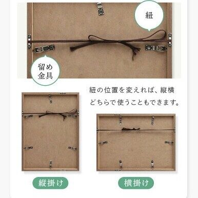 付属品の吊りヒモと裏面の吊り金具を使用して壁掛けでの使用が可能です。
