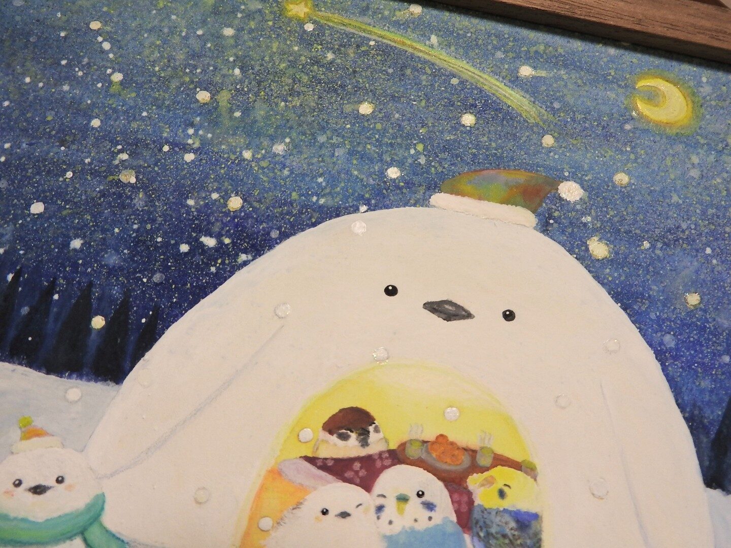 可愛いインコたちは、ふわふわの白い雪に囲まれながら、温かいかまくらの中でほっこりと過ごしています。雪の結晶がキラキラと光り、インコたちの色鮮やかな羽が一層際立ち、まるで冬のファンタジーの中にいるかのよう。彼らの無邪気な姿に、心がほっこりと温まります。 かまくらの中でのんびり過ごすインコたちは、ほんの少しの幸せを私たちに分けてくれることでしょう。寒い冬も一緒に乗り越え、心温まる瞬間を♪