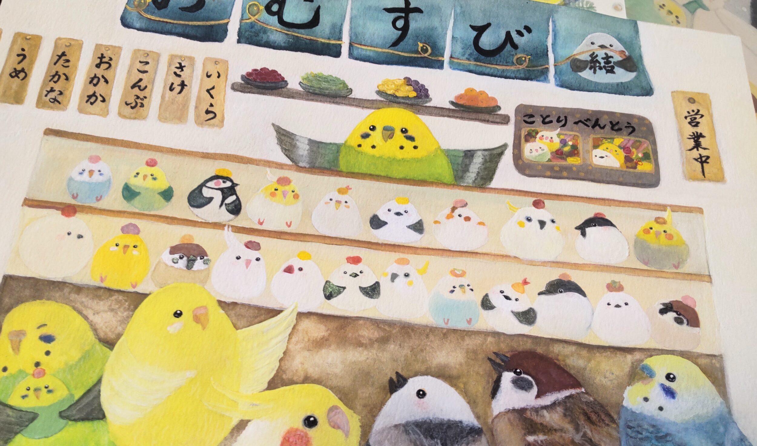 ・仕上げに保護スプレーを施しておりますが、水彩・透明水彩絵具等を使用しているため水濡れには十分ご注意ください。