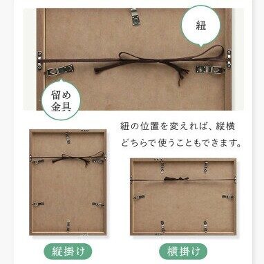 付属品の吊りヒモと裏面の吊り金具を使用して壁掛けでの使用が可能です。