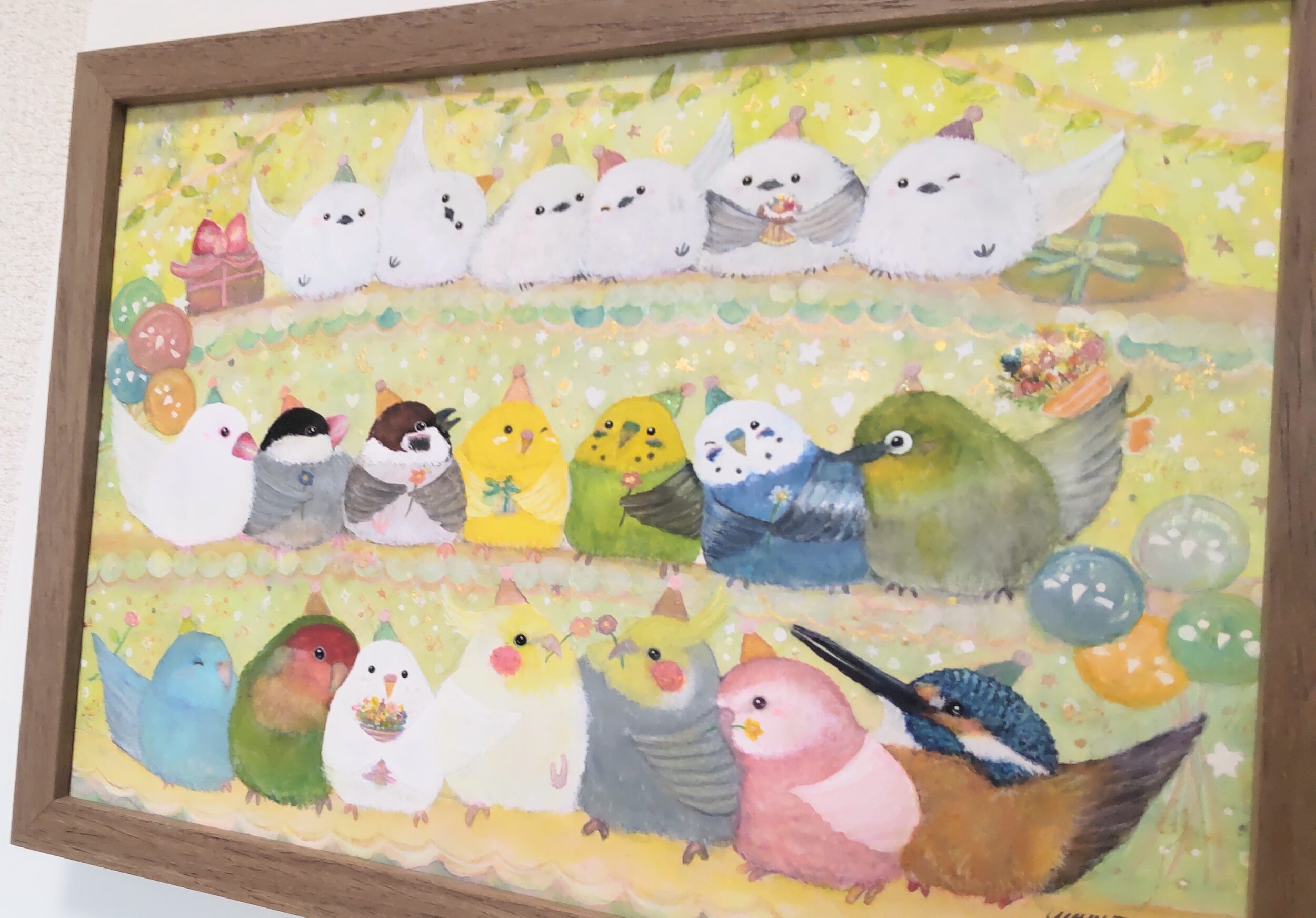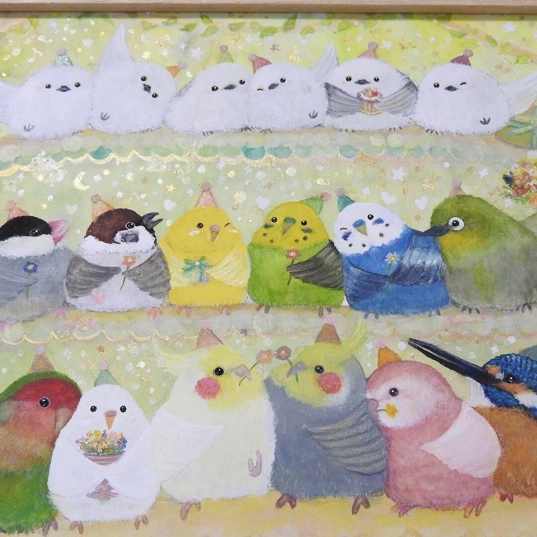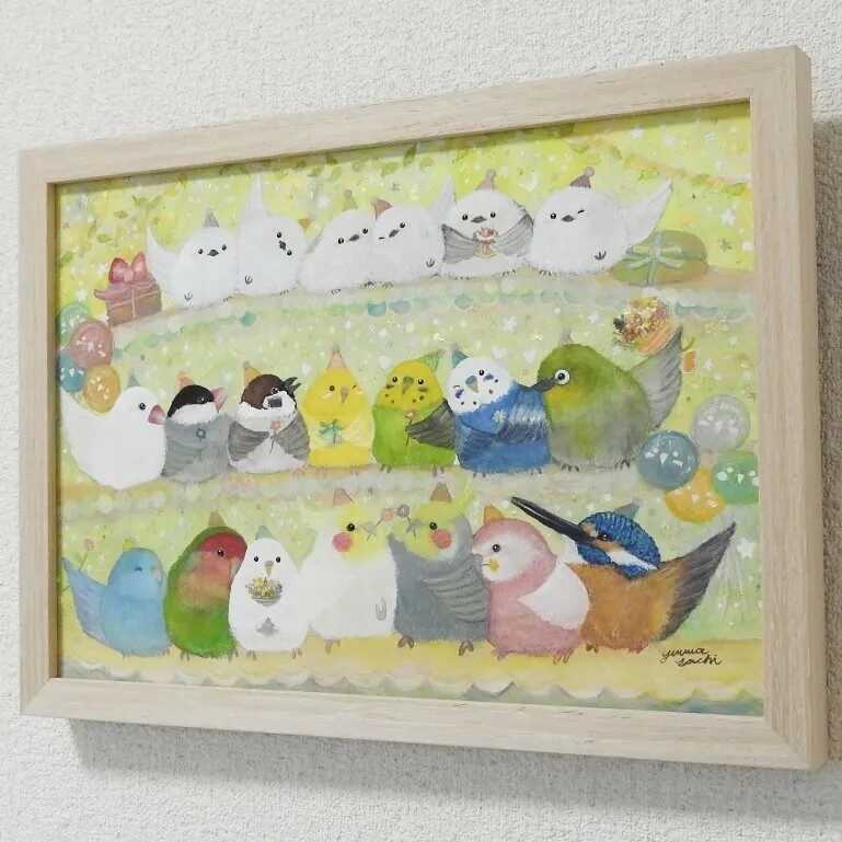 もしも…鳥たちの世界があったなら……。自由に物語を想像していただけましたら幸いです。大切な方への世界に1つだけの贈り物、お部屋に飾るインテリアアートとしてもおすすめの1枚です。