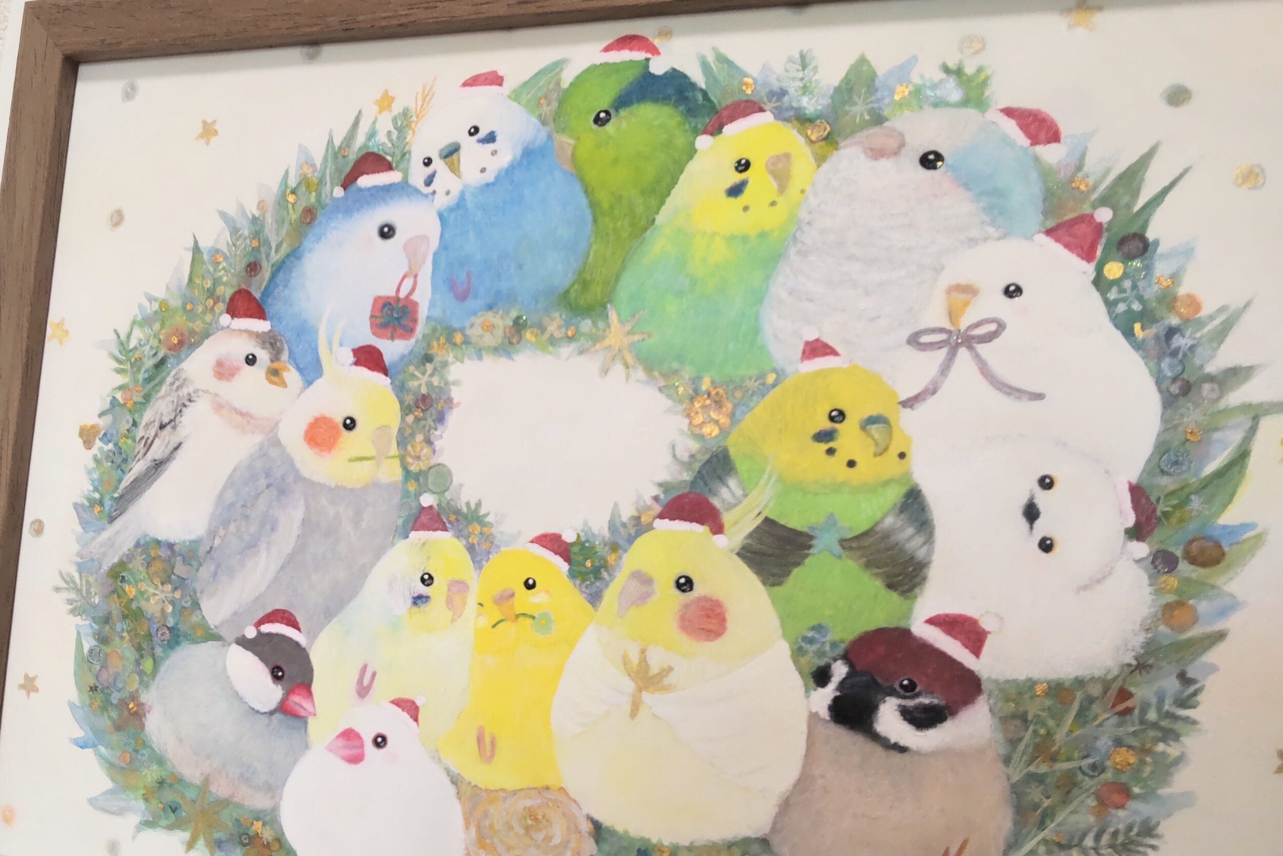 クリスマスのインテリアアートとしてもかわいい一枚です。 華やかな色合いと愛らしい表情が、見る人を笑顔にしてくれます。