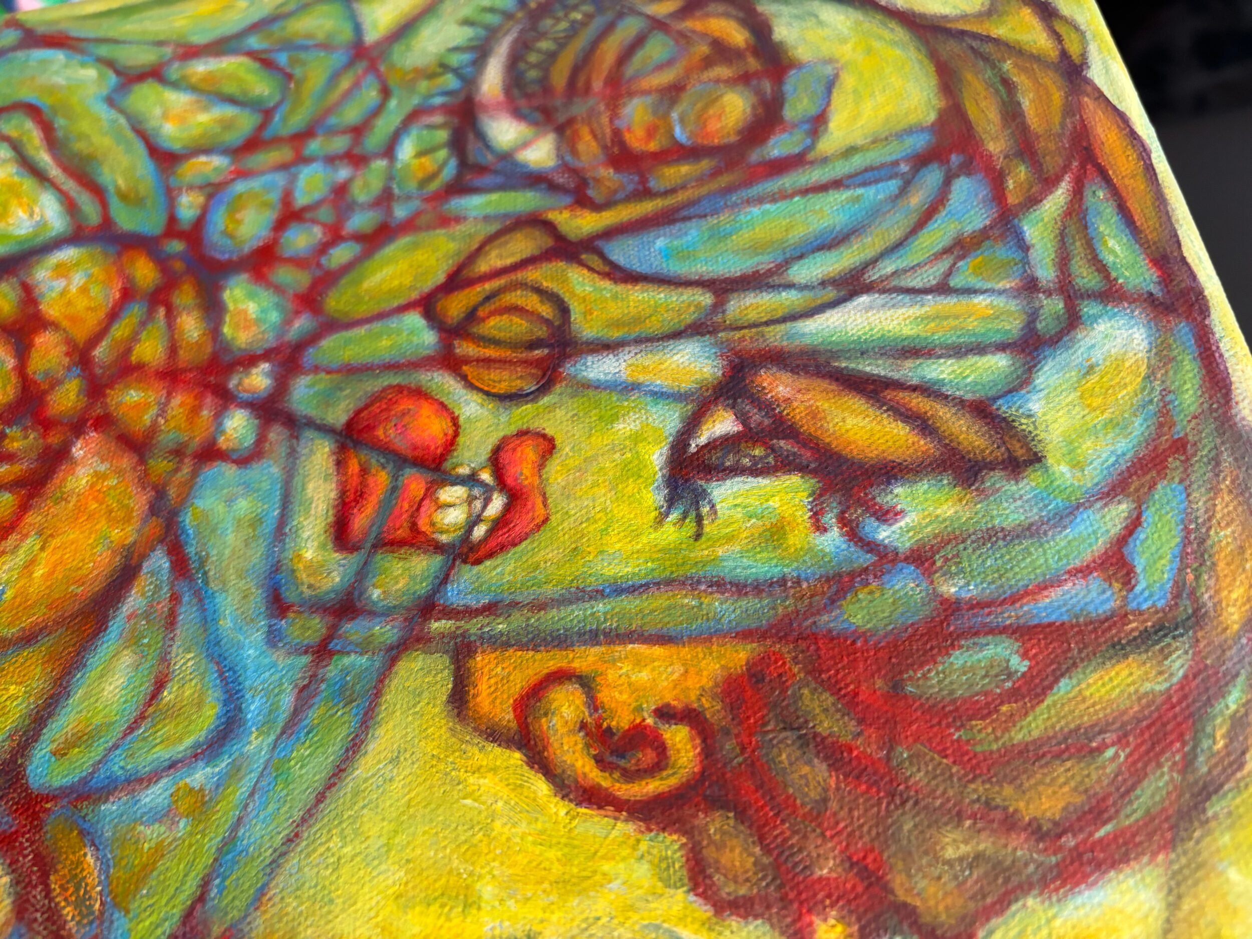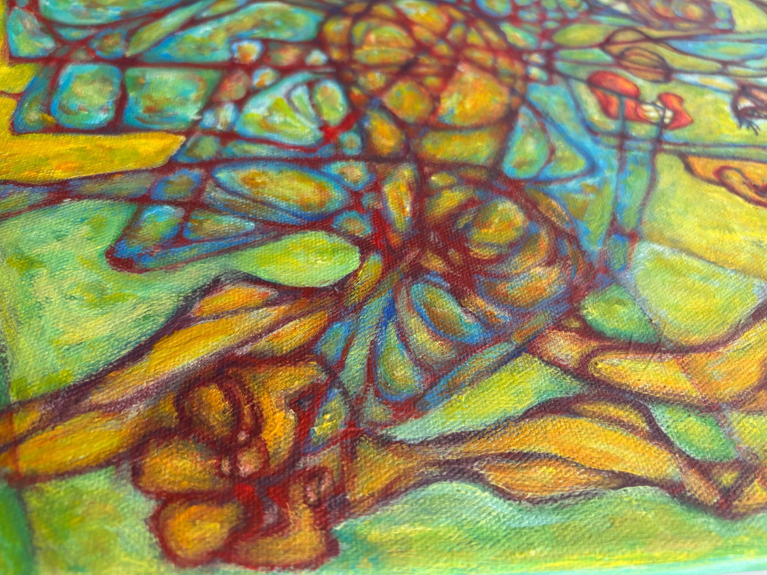 過敏に研ぎ澄まされた神経を、あえて逆手に取り、日々押し寄せる強い視覚刺激から、むしろ力を受け取ろうとする感覚を描いています。
