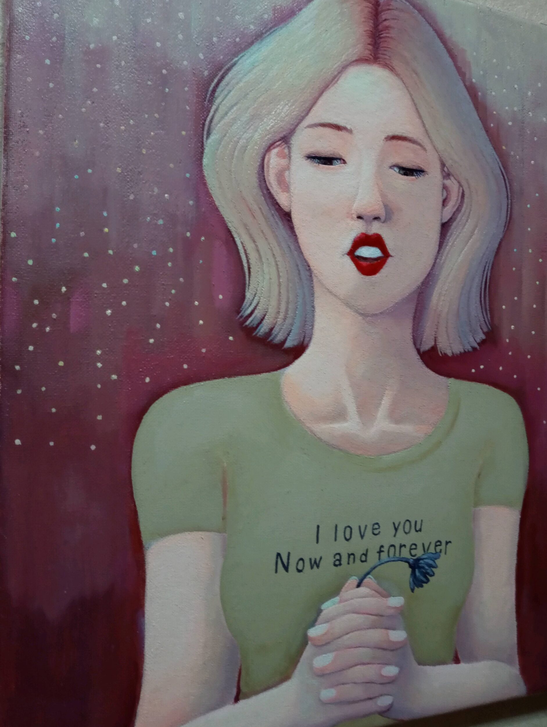 油彩画キャンバス F8号 series Women㉘ 今を生きる女性をスパイスを効かせた愛で表現しました。 この世界に永遠なんてものはあるのでしょうか… 一瞬一瞬の煌めきがずっと続いているだけなのかも知れません。
