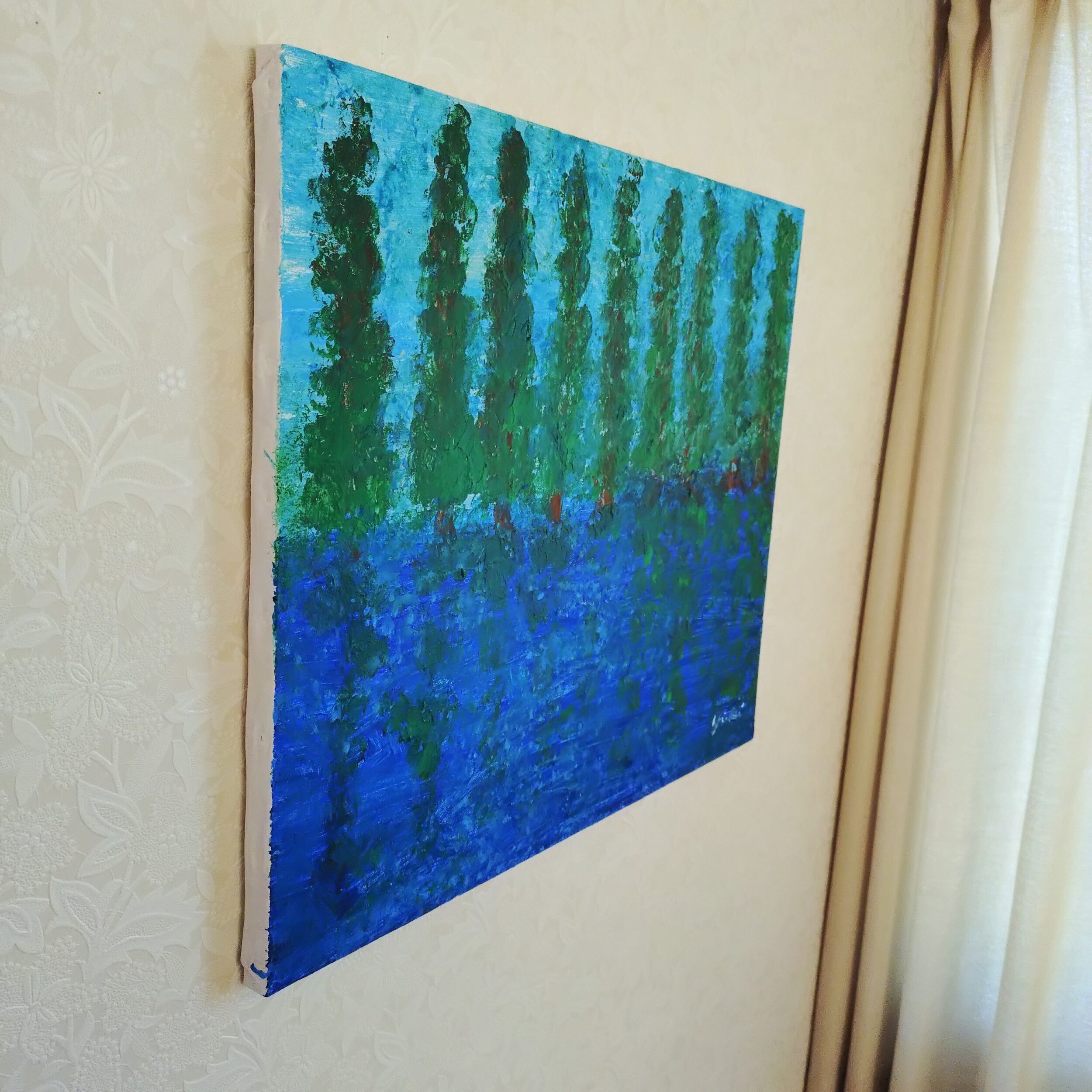 ここは私の好きな場所で、ある時期いつも訪れていたとても思い入れのある懐かしい場所です。この絵を描く時、この絵を眺める時、私はこの場所を思い出し不思議と癒されます。この作品を好きになってくれた方とその時の思いや今この作品を描いている大切な時間を共有できたらうれしいです。