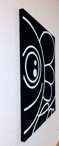 地球上で生きて行くのはとてもきびしいのでAnnの頭の中に銀河系から遥か彼方に存在する架空の惑星、丸の世界という楽園を作った。そこでは苦しみも悲しみもない、殺し殺される事もない、皆が平和に暮らしている世界。だから皆にこにこです。この作品はキャンバスにアクリル絵の具で描いている。 重量690g