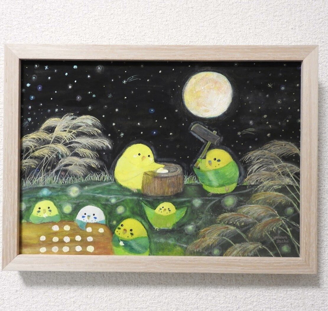 お月見餅つきインコたち