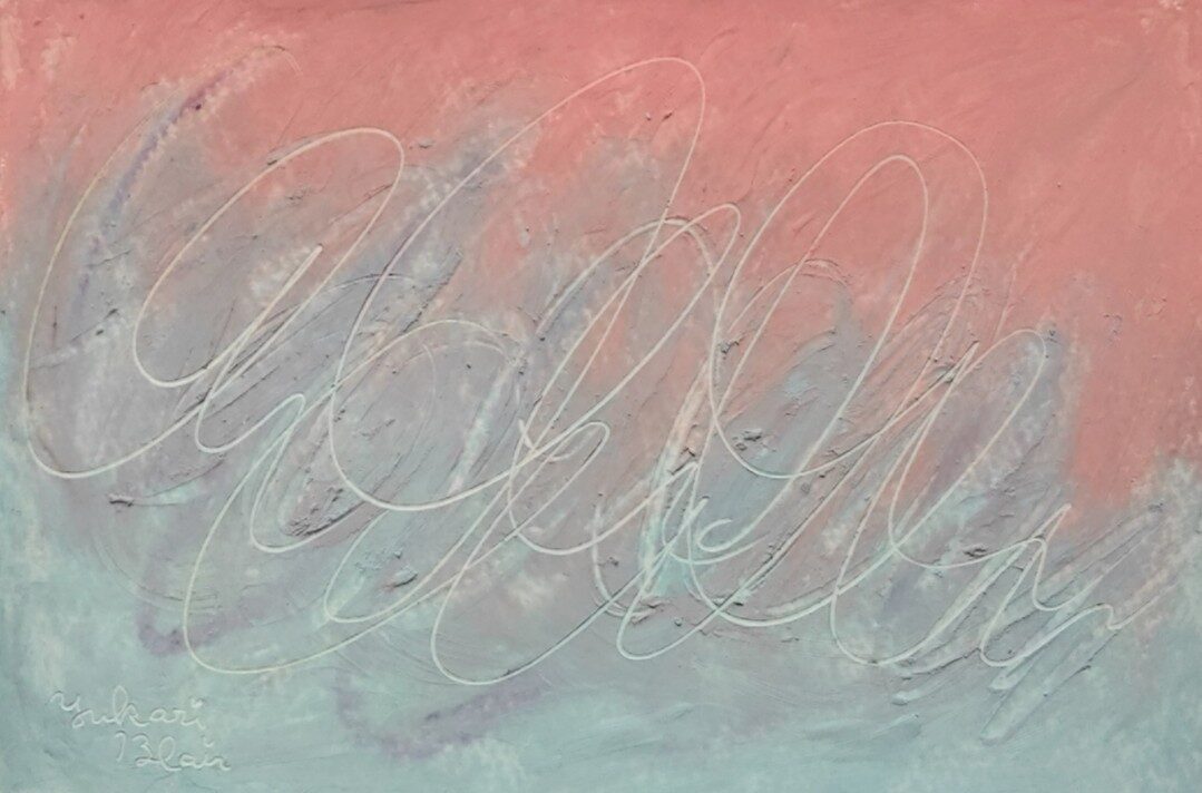 BLU/ZONE/2025/01 アブストラクトアート壁掛け、水色とピンクの水彩画、モダンインテリア装飾