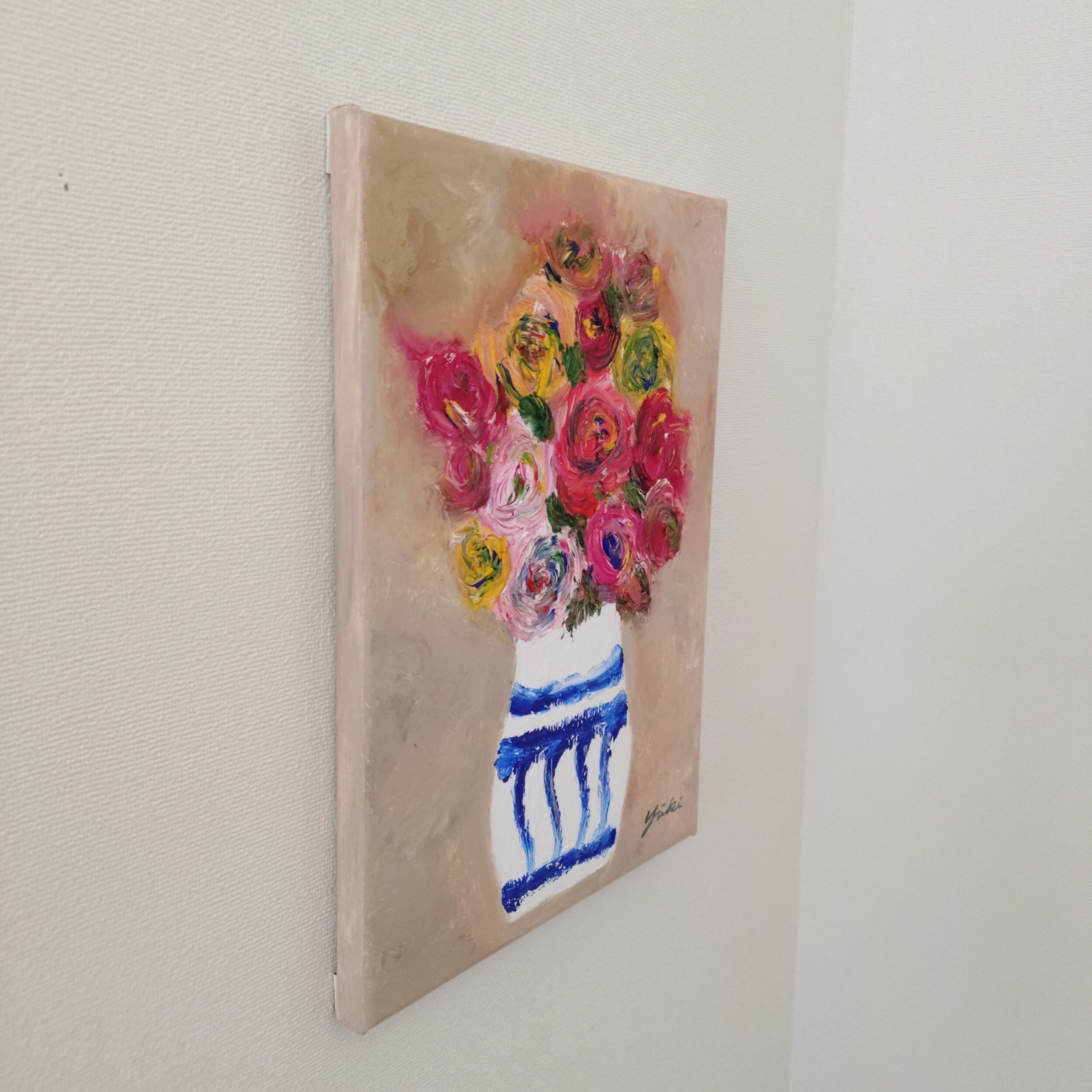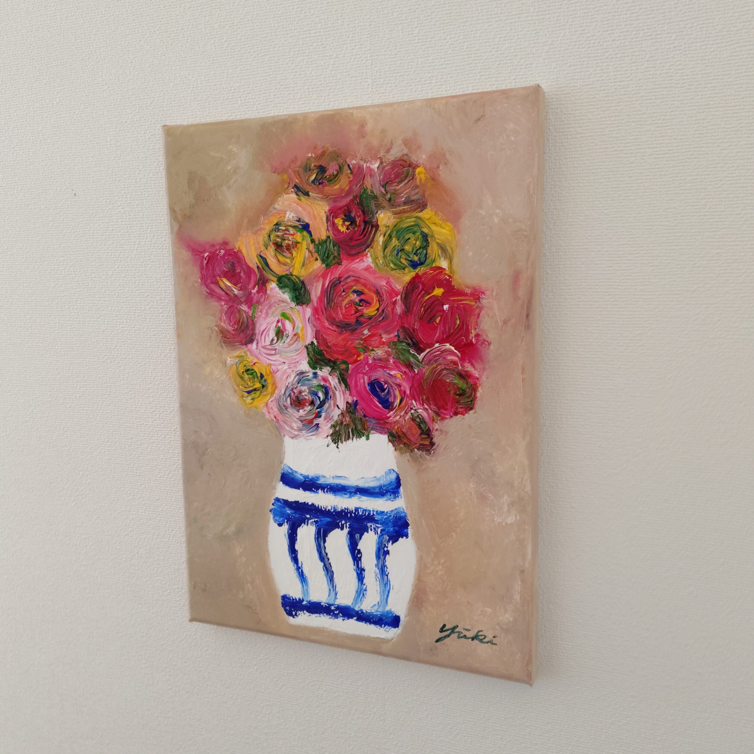 私の好きな花々、花瓶の花を描きました。油彩の花瓶の花シリーズで10作品位の中の1作品です。